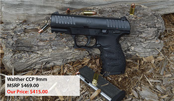 Walther CCP 9MM 8 round, 2 mags. Piston blow-back system for less recoil, great for concealed carry.