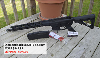 Diamondback EB DB15 5.56MM, 10" key mod rail, one 30 round magazine.