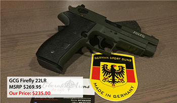 GSG Firefly .22LR 12 round, 2 mags IN GREEN! If you like the Sig Sauer Mosquito, you will appreciate this substantial .22 pistol.