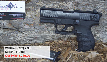 Walther P22Q .22LR 10 round, 1 mag. Ambi thumb safety, paddle mag release, great Walther ergonomics in a small, easy to fire semi-auto.