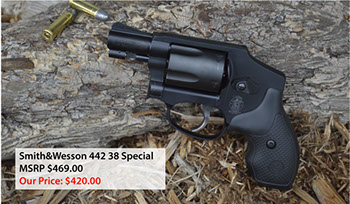 Smith & Wesson Model 442 38 Special +P, 5 shot snub nose hammerless revolver. Perfect purse or backup handgun.