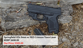 Springfield XDs 9MM 7 round, 2 mags, with RED CRIMSON TRACE laser.