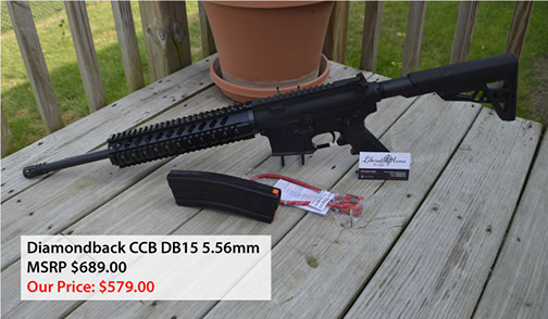 Diamondback CCB DB15 5.56MM, 10" free float rail, one 30 round magazine.