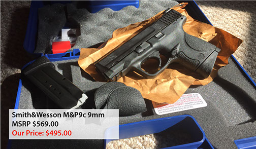 Smith & Wesson M&P9c 9MM 12 round, 2 mags. Available with and without thumb safety. Fully Ambidextrous.